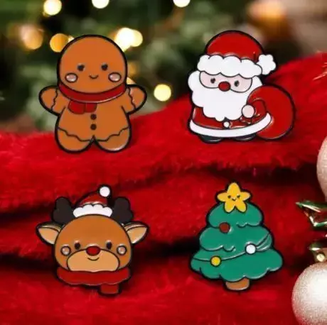 Pines x4 Navideños Decora tus prendas y accesorios con este set de 4 pines con motivos navideños. Perfectos para dar un toque festivo a tu look durante la temporada de fin de año.